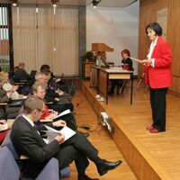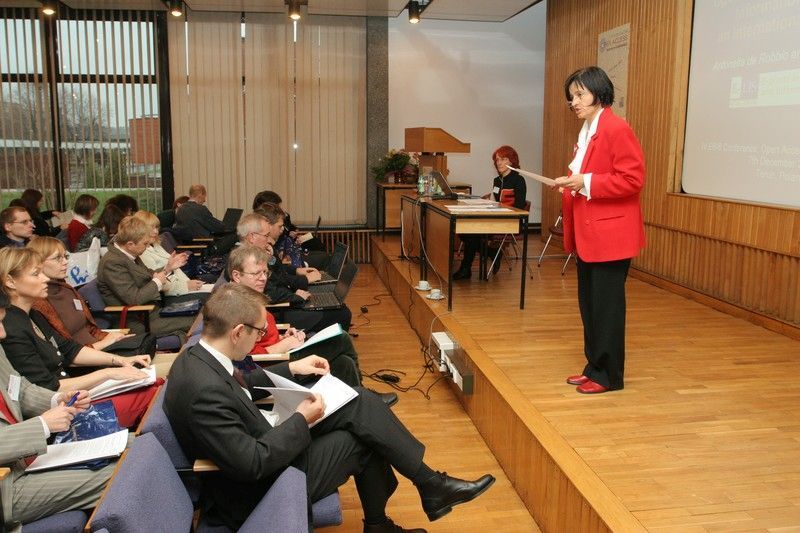 Bożena Bednarek Michalska podczas IV Konferencji EBIB Open Access “Internet w Bibliotekach”, która odbyła się 7-8 grudnia 2007 r., w Bibliotece Uniwersyteckiej w Toruniu. Fotografia ze zbiorów Biblioteki Uniwersyteckiej w Toruniu.