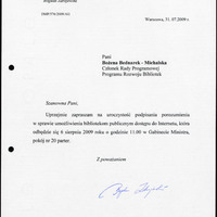 Zaproszenie na uroczystość podpisania porozumienia w sprawie umożliwienia bibliotekom publicznym dostępu do Internetu w ramach Programu Rozwoju Bibliotek