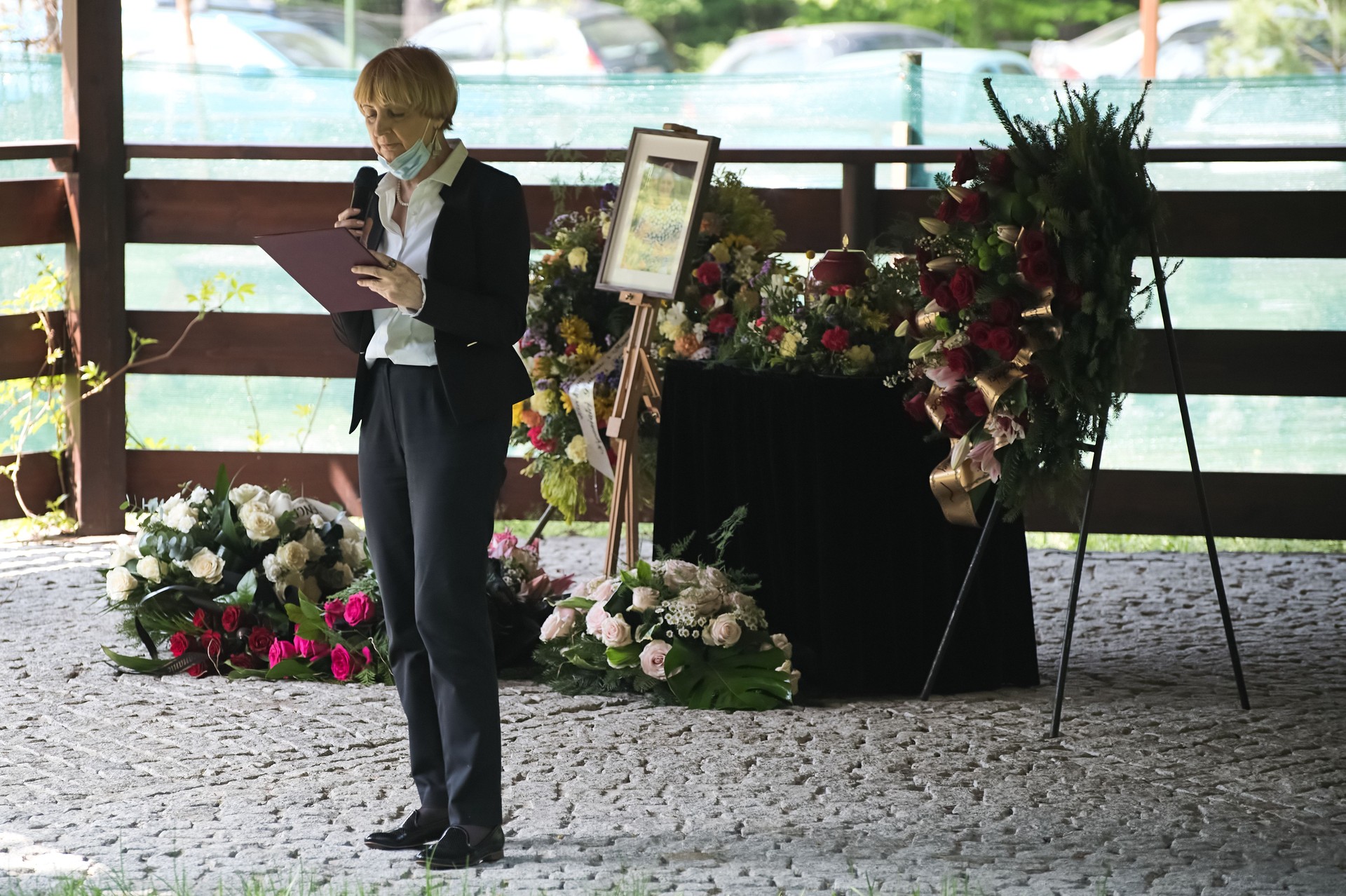 Odczytanie listu pożegnalnego Stowarzyszenia Bibliotekarzy Polskich przez kust. Jolantę Szewczak. Barbarka k. Torunia, 14 maja 2021 r. Fot. Tomasz Dorawa. Fotografia ze zbiorów Biblioteki Uniwersyteckiej w Toruniu