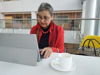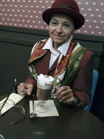 Bożena Bednarek-Michalska w Pijalni Czekolady przy ul. Szewskiej w Toruniu (jesień) Archiwum prywatne rodziny Michalskich