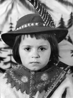Bożena Bednarek-Michalska w przedszkolu W przedszkolu w stroju góralskim, ok. 1961 r. Archiwum prywatne rodziny Michalskich.