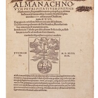 Kalendarz astronomiczny „Almanach Novum” pomyślany był jako kontynuacja „Efemeryd” Regiomontanusa doprowadzona do roku 1551. W prezentowanym wydaniu z 1544 r. efemerydy przedłużył do roku 1556 włoski astronom i matematyk Pietro Pitati (1490–1567).