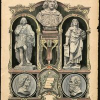 Twórcy przedstawionych na rycinie rzeźb to: Wiktor Brodzki (1826–1904), artysta rzeźbiarz, studiował na Wydziale Sztuk Pięknych w Petersburgu. Od 1890 r. był honorowym członkiem Towarzystwa Muzeum Narodowego Polskiego w Rapperswilu. Teodor Rygier (1841–1913), artysta rzeźbiarz, ukończył Akademię Sztuk Pięknych w Warszawie. Najsłynniejszym jego dziełem jest pomnik Adama Mickiewicza w Krakowie.