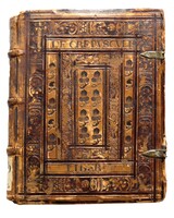 Dolna okładzin egzemplarza De revolutionibus z królewskiej biblioteki Zygmunta II Augusta z wytłoczonym tekstem „Sigismundi Augusti Regis Poloniae Monumentum 1551”; Biblioteka XX. Czartoryskich, sygn. 2338 III A Cim Saf -