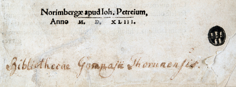 Do ciekawych egzemplarzy, które posiadają udokumentowaną proweniencję z epoki druku, należy także wolumin będący obecnie własnością Biblioteki Uniwersyteckiej w Toruniu, który zapewne niebawem po wydrukowaniu zasilił zbiory tzw. Biblioteki Zamkowej księcia Albrechta Hohenzollerna (1490–1568). Był on być może darem kanonika warmińskiego, a zarazem przyjaciela Mikołaja Kopernika – Georga Donnera dla pruskiego księcia. Wolumin z czasem znalazł się w Państwowej i Uniwersyteckiej Bibliotece w Królewcu, zaś po II wojnie światowej zasilił zbiory Biblioteki Uniwersyteckiej w Toruniu.