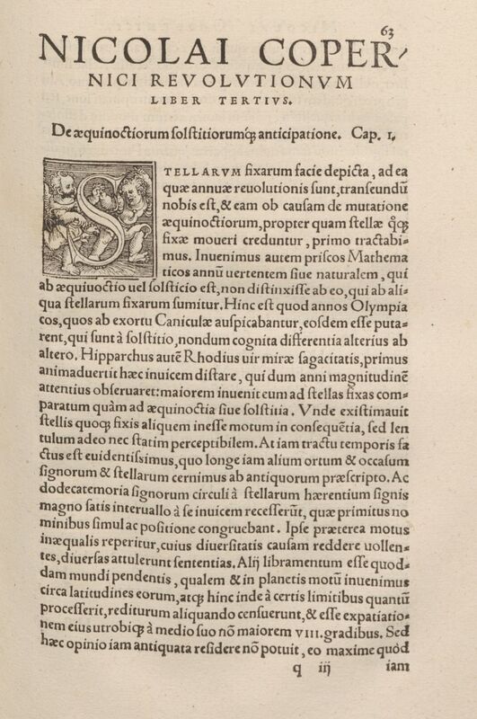 Księdze trzeciej, dotyczącej precesji i orbity Ziemi, poświęca Kopernik szczególną uwagę. Z jednej strony dokładne określenie kształtu orbity i położenia na niej Ziemi w dowolnym czasie było niezbędne do opisanego w księdze piątej odejmowania jej ruchu z położeń innych planet. Z drugiej, kwestia zrozumienia precesji miała niebagatelne znaczenie dla zreformowania kalendarza juliańskiego. Stąd też papież Leon X (Giovanni di Lorenzo de’ Medici, 1475–1521), krótko po objęciu pontyfikatu w połowie 1513 r., za pośrednictwem biskupa fossombrońskiego Pawła z Middelburga (Paul von Middelburg, 1446–1534), zwrócił się z prośbą o udział w tej sprawie do najświatlejszych ówczesnych uczonych, astronomów i matematyków. Prośba ta dotarła i do Kopernika, bowiem wiadomo, że sformułował on na nią odpowiedź. Jednak można się tylko domyślać, skąd papież mógł wiedzieć, że jeden z tych najznakomitszych umysłów znajduje się na końcu ówczesnego świata, we Fromborku na polskiej Warmii, a nie na profesorskiej katedrze, któregoś z uniwersytetów.
