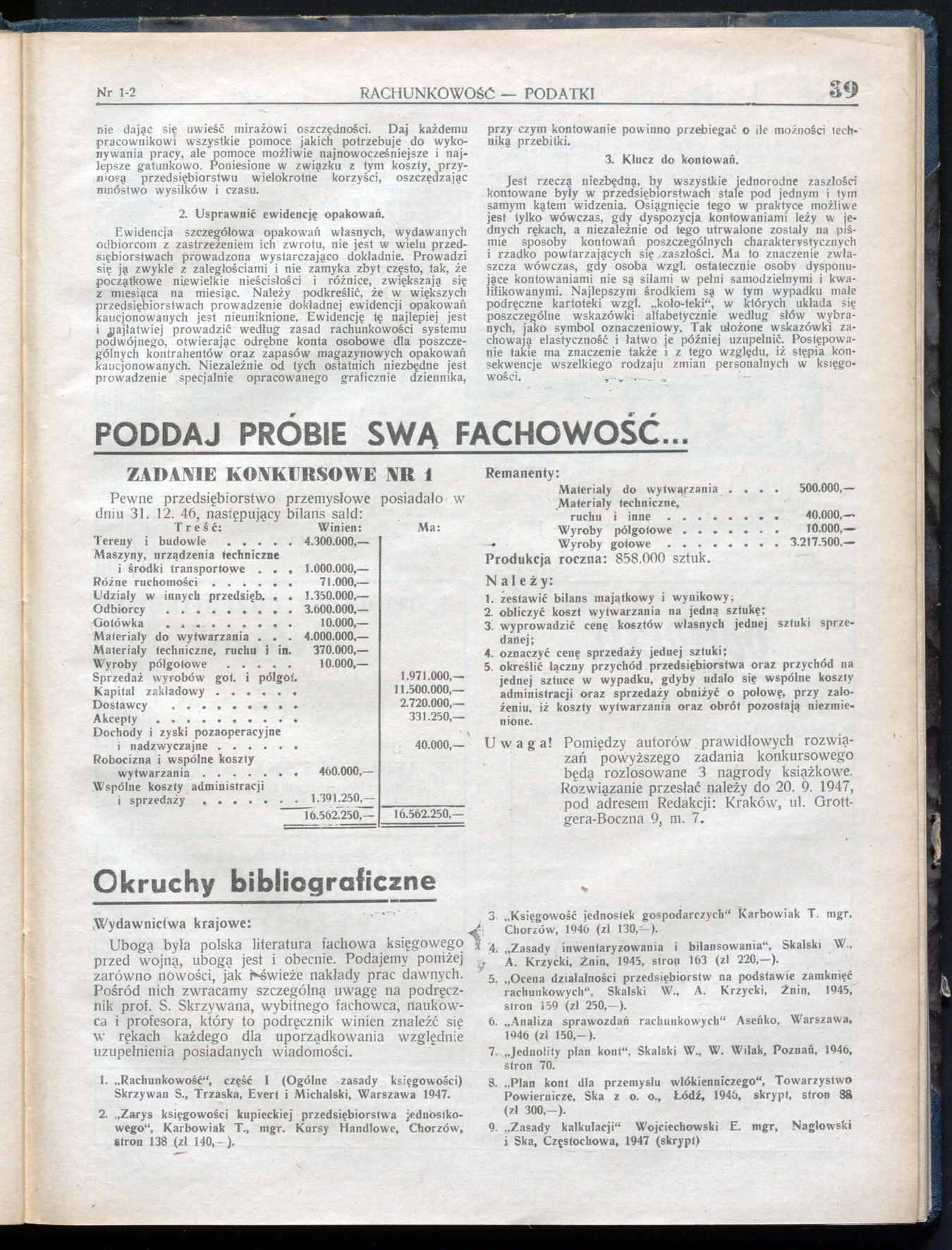 Rachunkowość - Podatki 1947, R. 1 nr 1/2