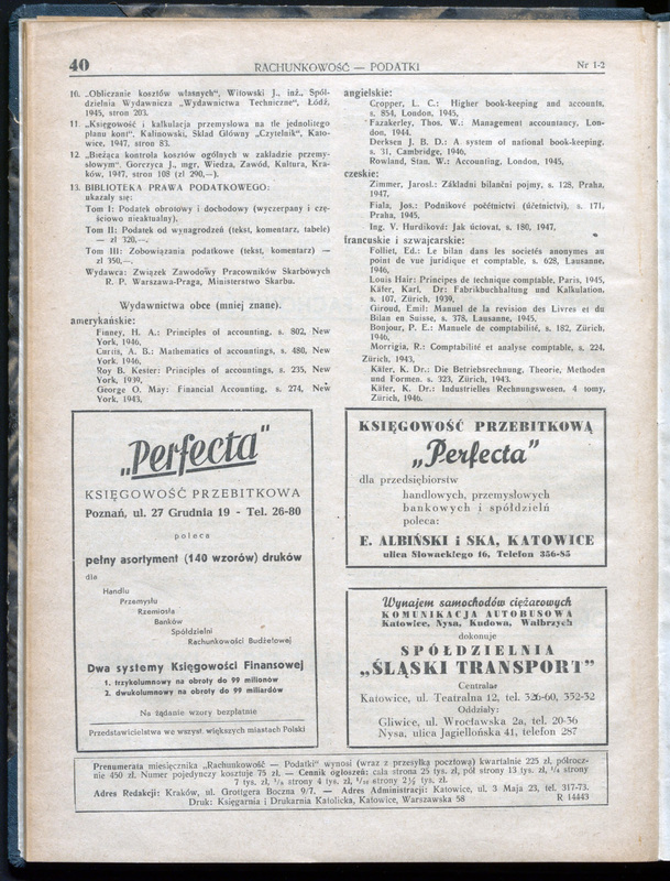 Rachunkowość - Podatki 1947, R. 1 nr 1/2