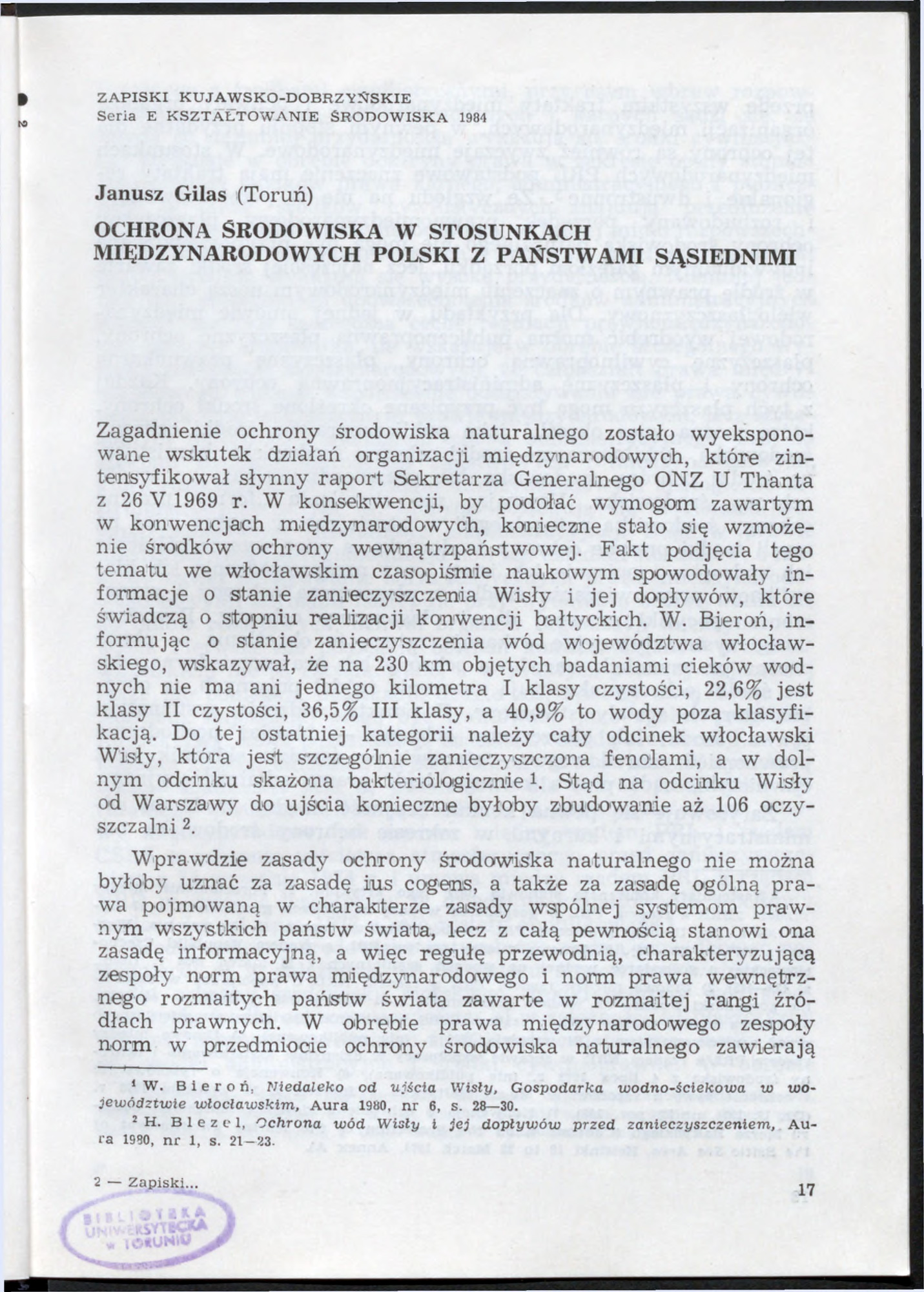 Zapiski Kujawsko-Dobrzyńskie. Seria E, Kształtowanie Środowiska