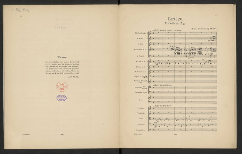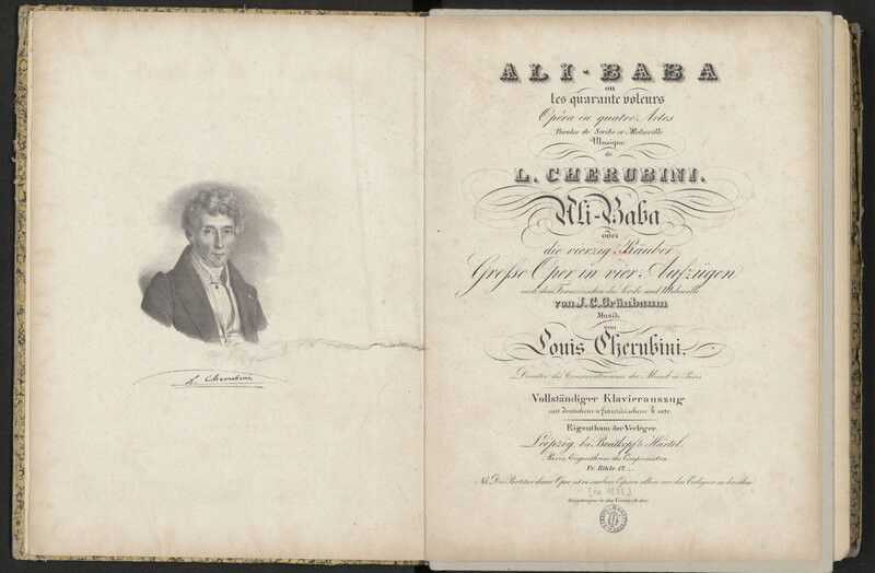 Wyciąg fortepianowy opery Ali - Baba i czterdziestu rozbójników. Karta tytułowa z portretem kompozytora-litografia, nuty-miedzioryt