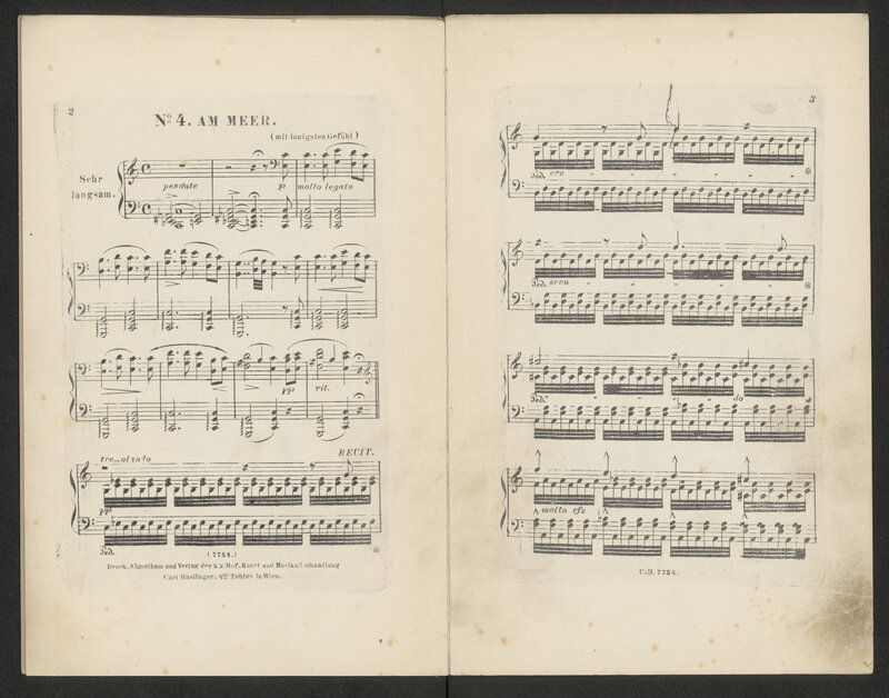 Aranżacja na fortepian solo pieśni Am Meer Franza Schuberta . Miedzioryt, pierwsze wydanie