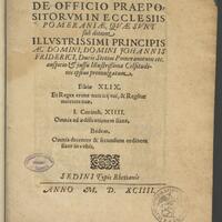 2. Charakterystyczna sygnatura biblioteki wcześniejszego właściciela, historyka Pomorza, Ludwiga Wilhelma Brüggemanna, np.: Sect. XIV.III.6.19, w której pierwsza liczba rzymska oznacza dział (sekcję), kolejna poddział, a liczby arabskie oznaczają pozycję danej książki w dziale