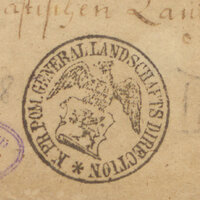 1. Pieczęć okrągła, w otoku nazwa instytucji: K[önigliche] Pr[eussische] Pom[mersche] Generallandschafts Direction, w centrum wizerunek pruskiego orła trzymającego w pazurach kartę z przedstawieniem pomorskiego gryfa -