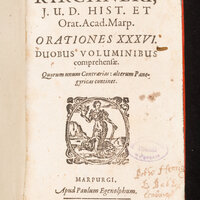 1. Sygnatura odręczna na prostokątnej nalepce umieszczanej u dołu grzbietu, składająca się z liter Tit., cyfry rzymskiej na oznaczenie działu i cyfry arabskiej oznaczającej numer kolejny
