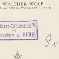 1. Pieczątka okrągła: Stadtbücherei Stolp i. Pom.