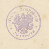 1. Pieczątka okrągła z napisem w otoku: BIBLIOTHEK DES KÖNIGL. GYMN. ZU CONITZ.