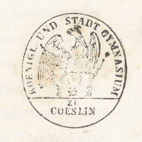 8. Okrągła pieczątka: Koenigl. und Stadt Gymnasium zu Coeslin -