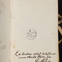 1. Pieczątka okrągła: Ex Biblioth. Gymn. Pal. Sedin.