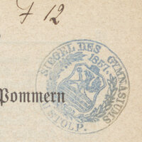 1. Pieczątka okrągła: "Siegel des Gymnasiums zu Stolp. 1857" -