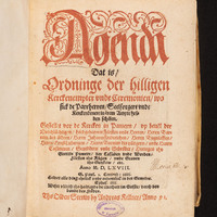 Agenda Dat is, Ordninge der hilligen Kerckenempter vnde Ceremonien, wo sick de Parrherren, Seelsorgere vnde Kerckendenere in ërem Ampte holden schölen, Gestellet vor de Kercken in Pamern, vp beuel der Dorchlüchtigen, Hochgebarnen Försten vnde Herren, Herrn Barnim des öldern, Herrn Johann Friderichen [...] Anno M.D.LXVIII. [...].