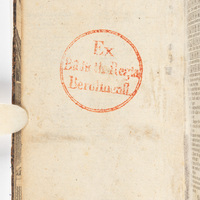 - Na wewnętrznej stronie górnej okładziny rkp. czarny tusz: 125, Hymnolog.; pod spodem oł. rkp. H 659; verso k. tyt. duża czerwona okrągła pięczęć: Ex Biblioth. Regia Berolinensi.