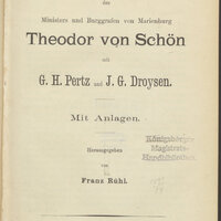 - Briefwechsel des Ministers und Burggrafen von Marienburg Theodor von Schön