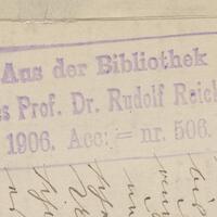 Pieczęć prostokątna: Aus der Bibliothek des Prof. Dr. Rudolf Reicke 1906
