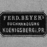 - Naklejka krolewieckiego wydawcy: Ferd. Beyer's, Buchhandlung, Koenigsberg i. Pr.