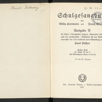 Schulgesangbuch. Ausgabe D für höhere Lehranstalten - wyklejka przedniej okladziny z wpisem własnościowym: Renate Ruthenberg i strona tytułowa z czarną okrągłą pieczątką: Hilfsbücherei der Oberschule für Mädchen Belgard a. Pers. -