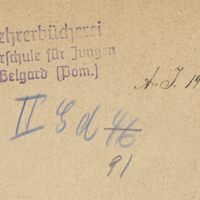- Pieczątka okrągła: Bibliothek des Gymnasiums zu Belgard.