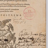 - 1. Pieczątka "Ex Bibliotheca Gymnasii Culmensis". 2. Nalepka w górnej części grzbietu z sygnarturą.