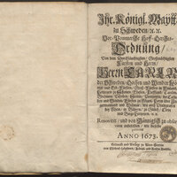 Zbiór druków i rękopisów zawierających akty prawne dotyczące szwedzkiego Pomorza Przedniego (zarządzenia, rozkazy, zakazy, instrukcje i recesy sejmowe dotyczące sądów, policji, Kościoła, zagadnień gospodarczych oraz całości spraw prowincji)