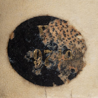 - 1. Pieczątka owalna (tusz czerwony) „Ex Bibl. Regia Berolin.” ; 2. Czarna owalna nalepka na grzbiecie z wytłoczoną złotem sygnaturą „Wo 9740” ; 3. Sygnatura ołówkiem na wyklejce „Wo 9740” .
