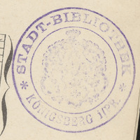 - Pieczątka: Stadt-Bibliothek Königsberg i/PR.; Sygnatura ołówkowa: Pd 6; Ekslibris: Nachlass von Dr Wilh Pelka gef. für das Vaterland am 25. März 1916; rkp. podpis W. Pelka