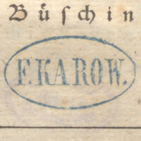 - Pieczątka owalna Bibliothek des Stadtgymnasiums Stettin oraz pieczątka pastora, kolekcjonera Friedricha Karowa (1804-1878), który przekazał zapisem testamentowym swój księgozbiór bibliotece Gimnazjum w Szczecinie.