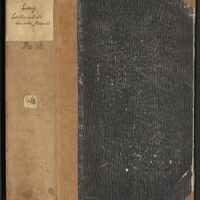 - Grzbiet książki z sygnaturą oraz skróconym opisem