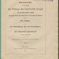 Festrede zur Jahresfeier der Stiftung der Universität Dorpat am 12. December 1875 "Die gegenwärtigen Forschungen über den Ursprung des Krebses"