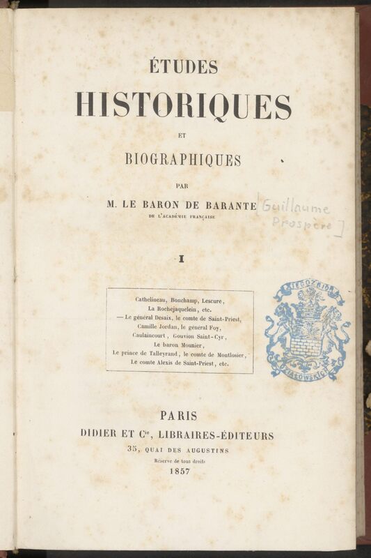 Études historiques et biographiques. Tome 1