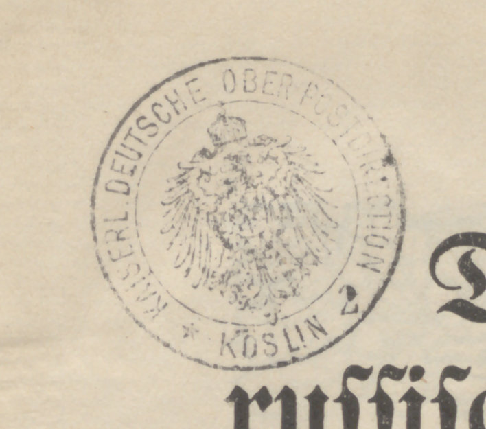 Prostokątna pieczątka założonego w 1910 roku koszalińskiego Verein für Heimatkunde und Heimatschutz zu Köslin, którego statutowym celem było założenie muzeum regionalnego w Koszalinie.