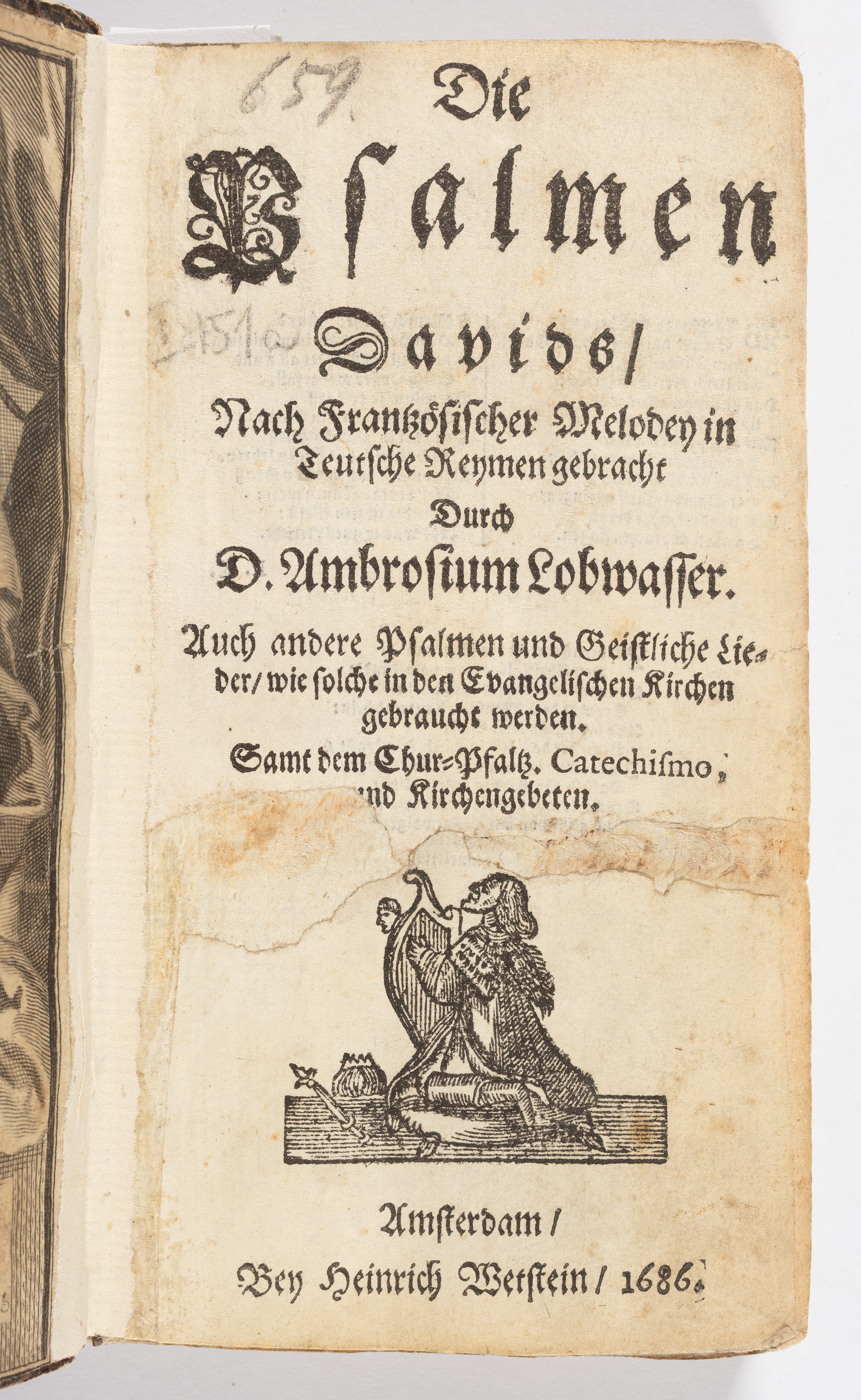 Part of Die Psalmen Davids Nach Frantzzoesischer Melodey in Teutsche reymen gebracht Durch D. Ambrosium Lobwasser. Auch andere Psalmen und Geistliche Lieder wie solche in den Evangelischen Kirchen gebraucht werden. Sampt dem Chur - Pflatz. Catechismo, und Kirchengebeten