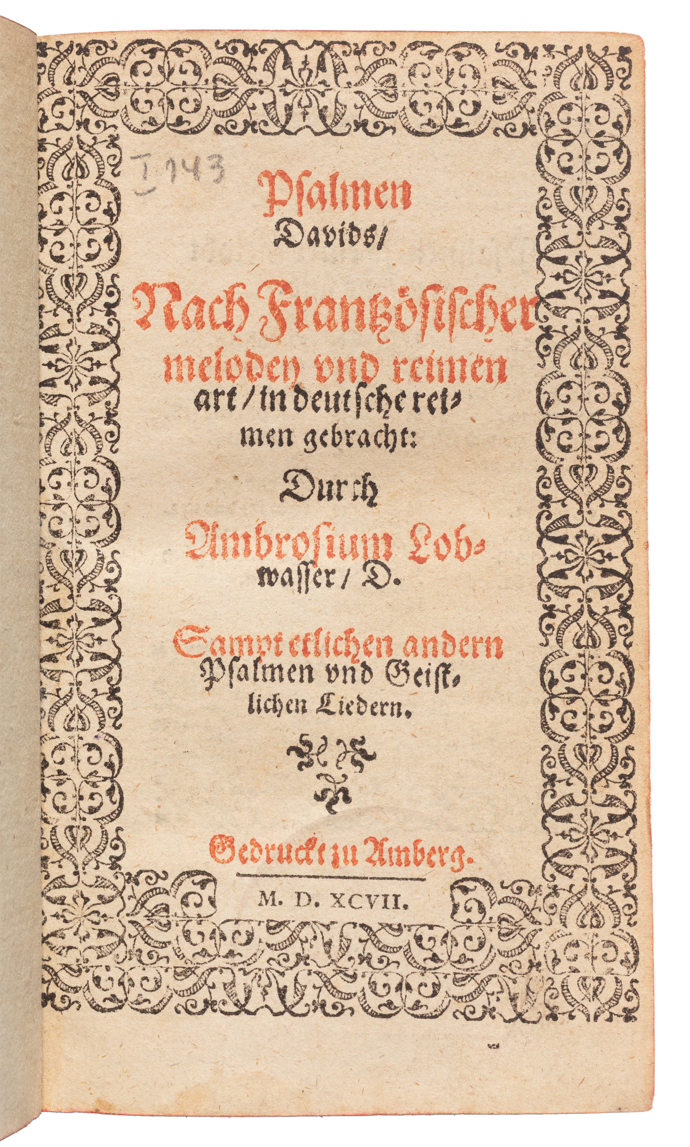 Part of Psalmen Davids Nach Frantzzoesischer melodey und reimen art in deutsche reimen gebracht: Durch Ambrosium Lobwasser D. Sampt etlichen anders Psalmen und Geistlichen Liedern