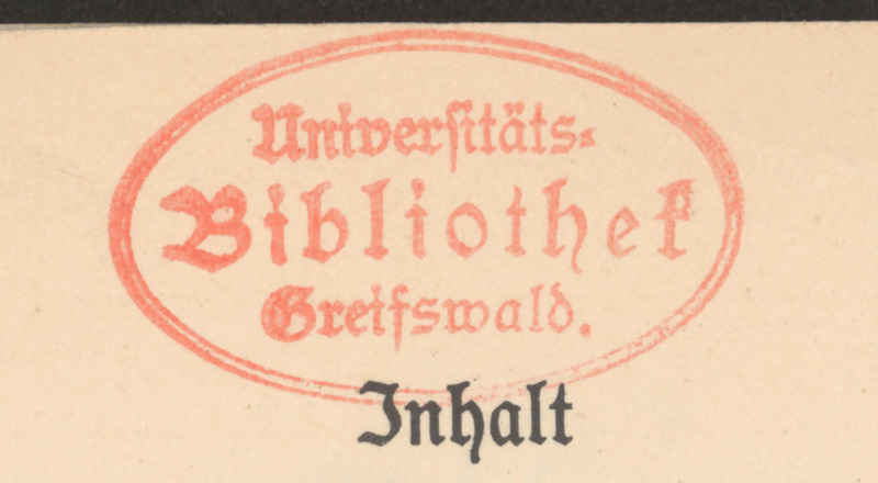 Der pommersche Musikant. Lieder für die Schule - owalna czerwona pieczątka: Universitäts=Bibliothek Greisswald.
