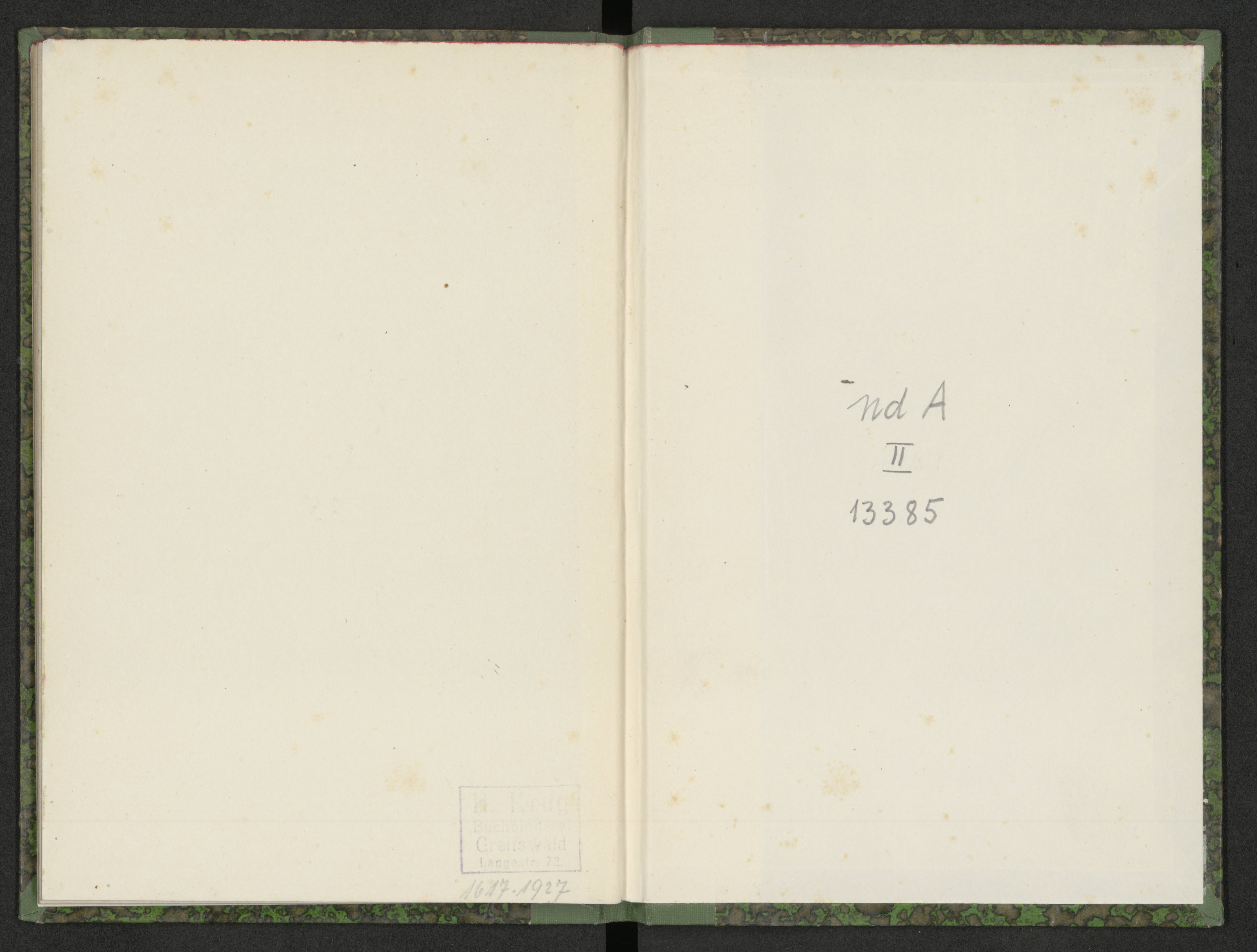 Plattdeutsche Lieder - pieczątka prostokątna: H. Krug Buchhinderei Greiswald Langestr. 72
