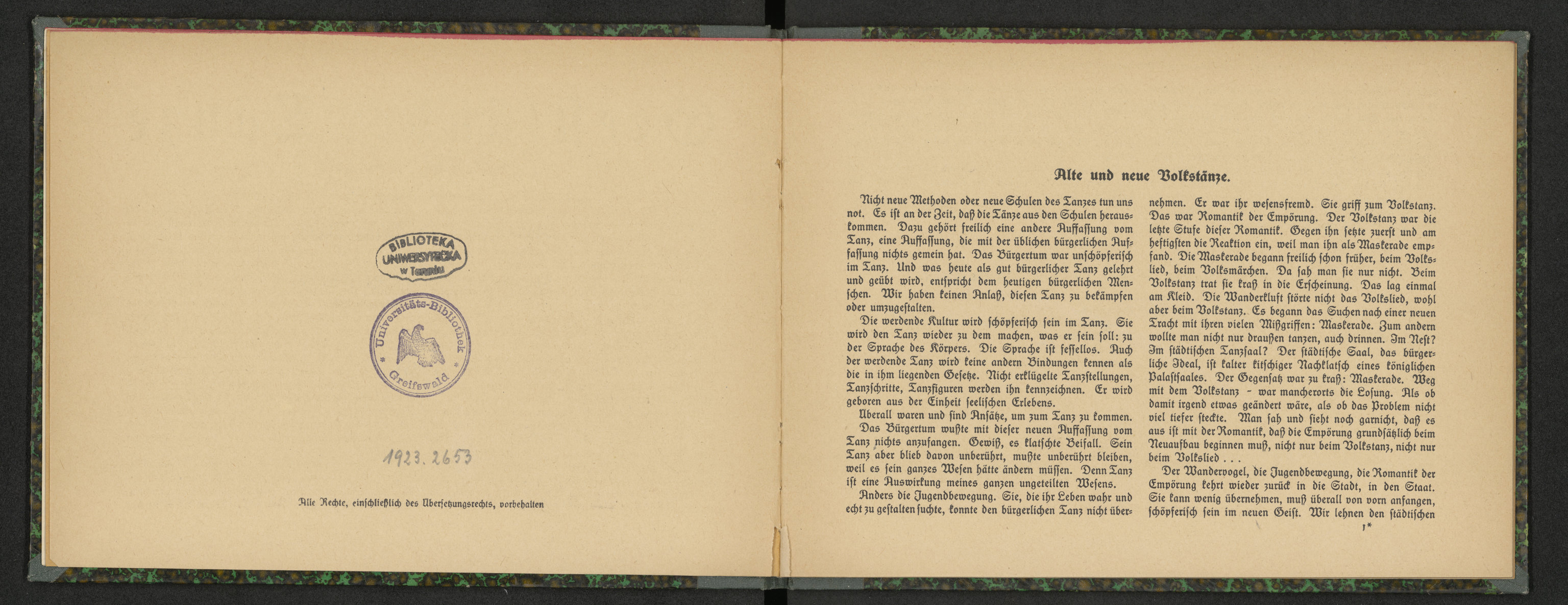 Geestländer Tänze - okrągła pieczątka: Universitäts-Bibliothek Greifswald