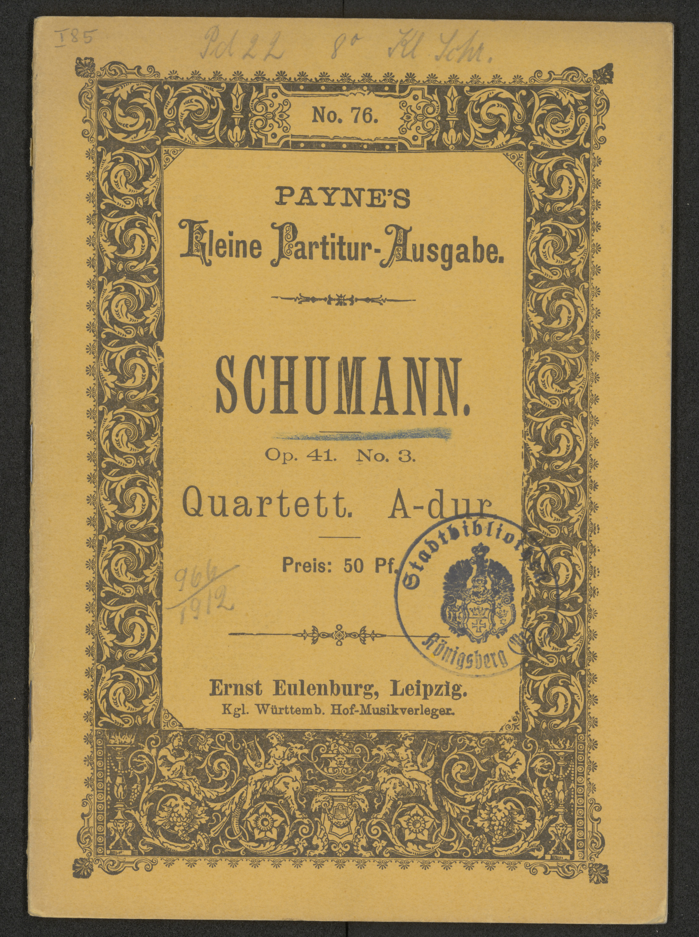 Part of Quartet No. 3 A-dur für 2 Violinen, Viola und Violoncell. Seinem Freunde Felix Mendelssohn-Bartholdy zugeeignet