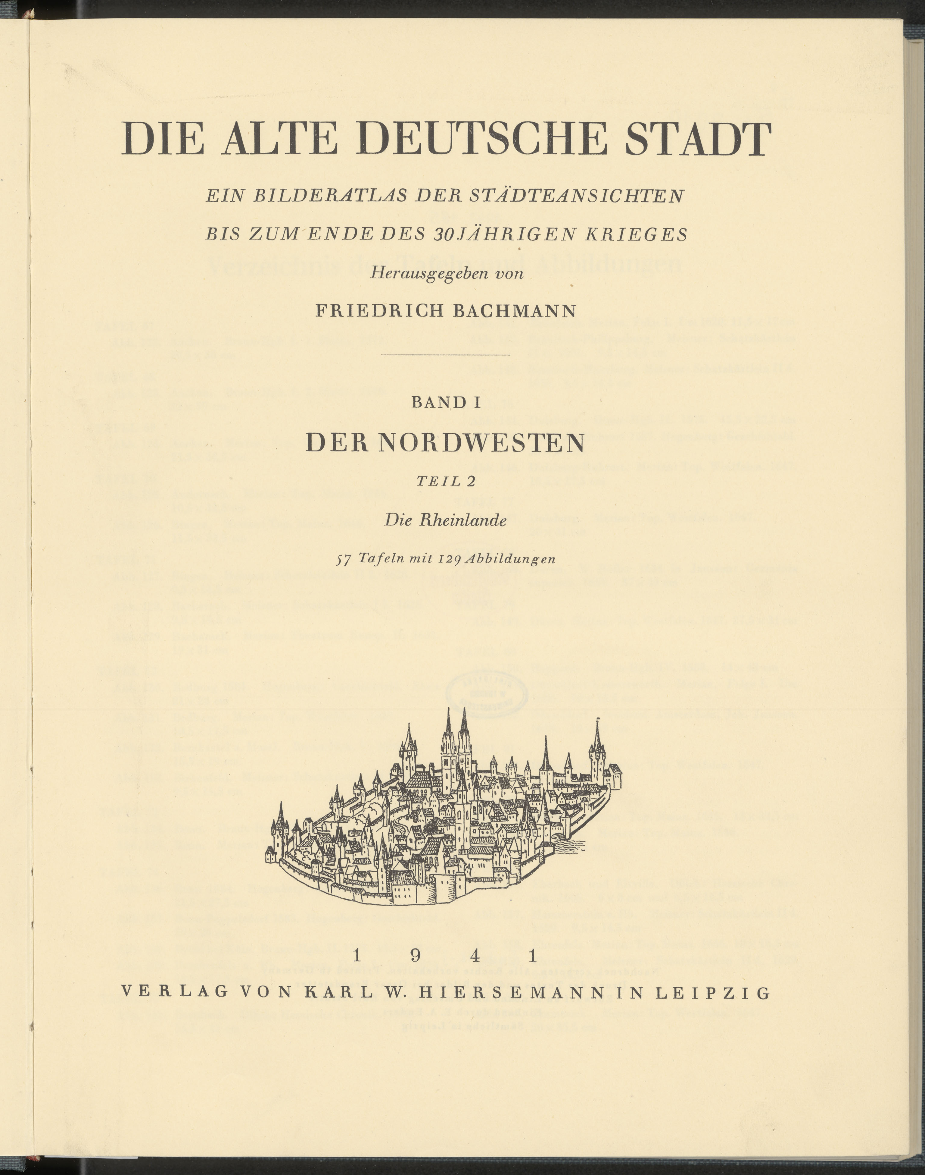 Die alte deutsche Stadt : ein Bilderatlas der Städteansichten bis zum Ende des 30 jährigen Krieges ; Band I ; Der Nordwesten; Teil 2, Die Rheinlande - strona tytułowa