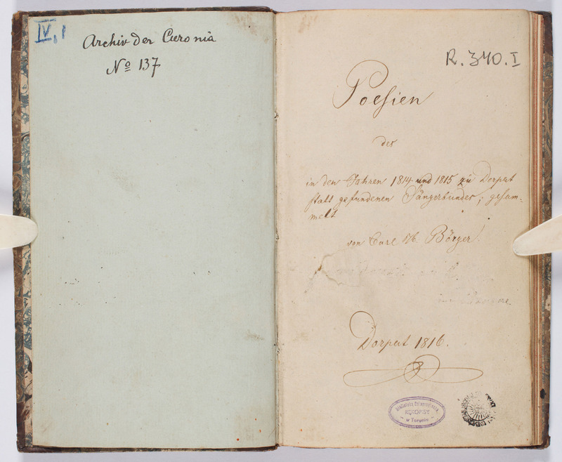 Part of Poesien des... zu Dorpat Statt gefundenen Sägerbundes, gesammelt /von...