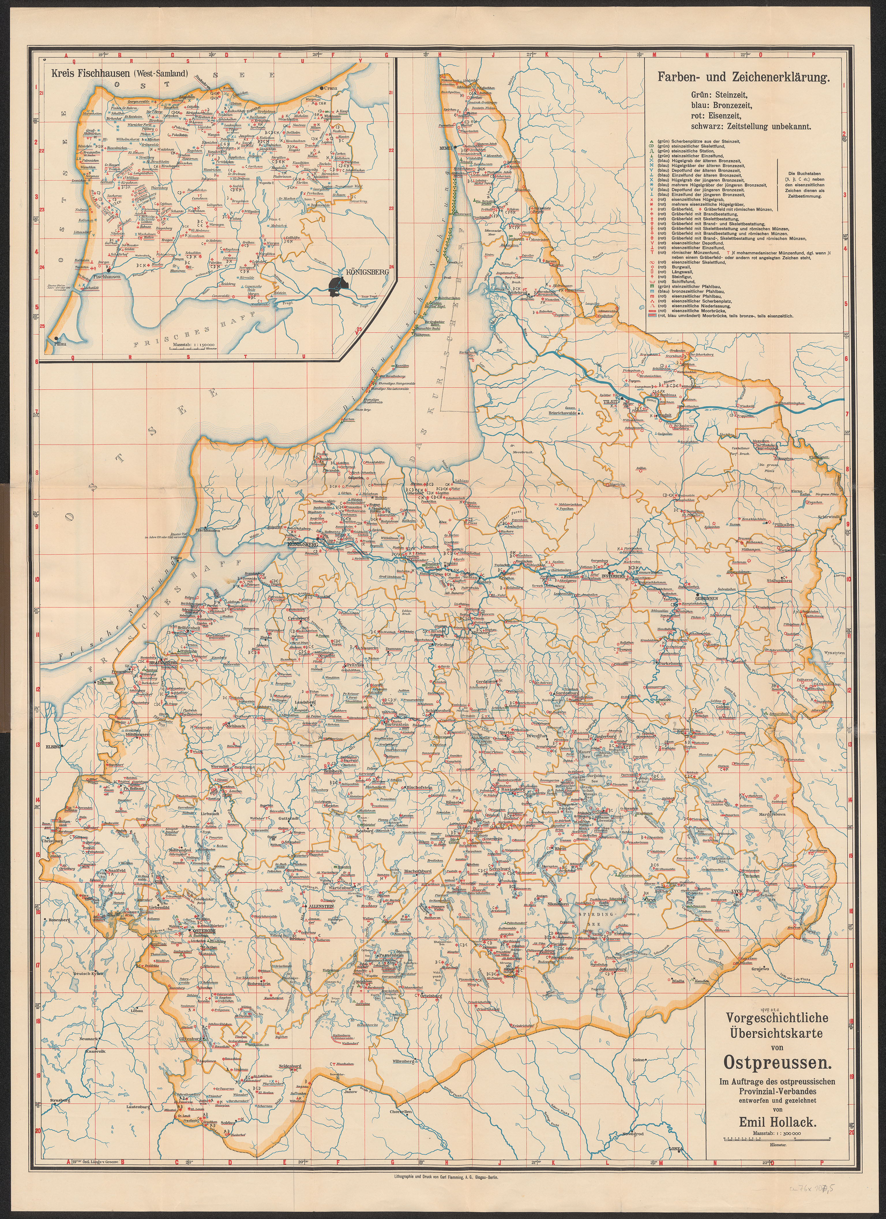 Vorgeschichtliche Übersichtskarte von Ostpreussen. : Im Auftrage des ostpreussischen Provinzial-Verbandes bearbeitet und herausgegeben von Emil Hollack. - mapa