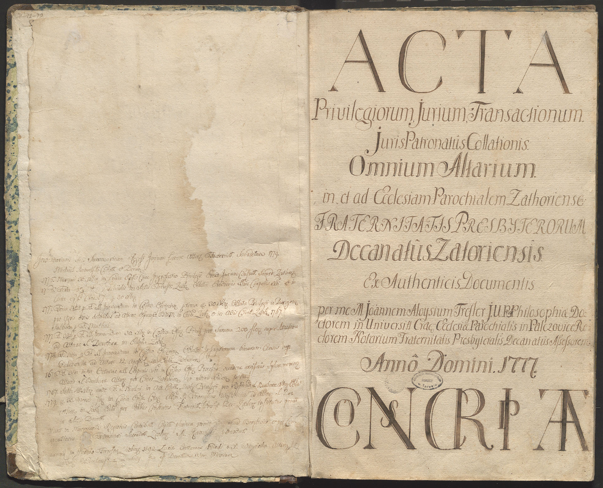 Kopiariusz przywilejów bractwa kapłańskiego - karta tytułowa