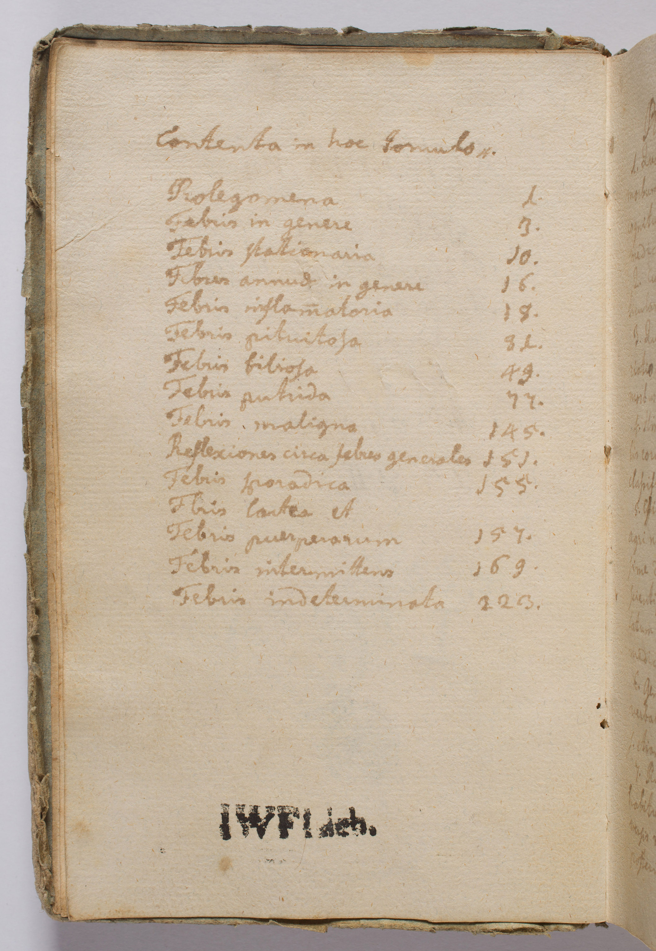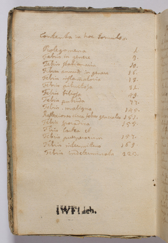 Aphorismi de febribus - spis treści